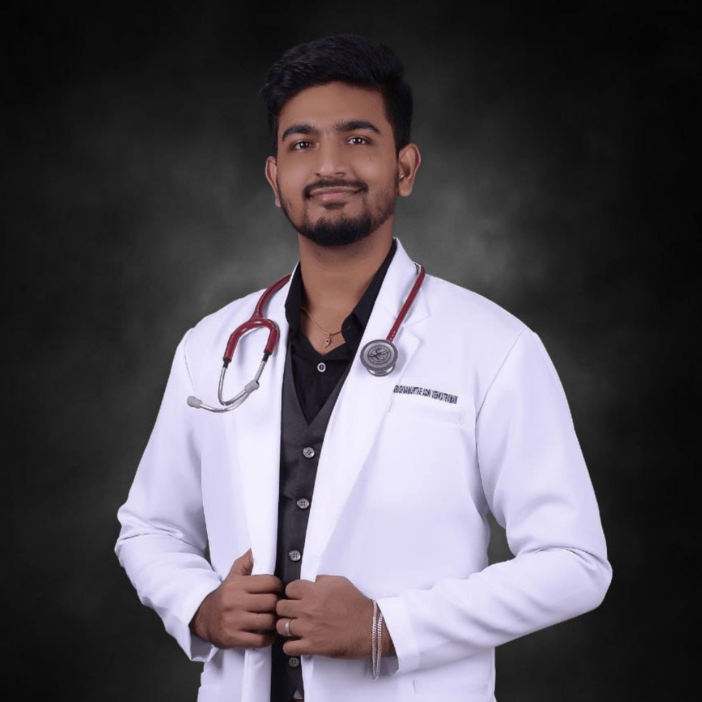 Dr. Adhi Venkatraman Krishnamurthe, MD (Philippines), BS (Psychology) is a compassionate and dedicated medical professional with strong expertise in emergency care, internal medicine, and patient management. He graduated from Davao Medical School Foundation, Philippines, securing an impressive rank of 30 out of 369, and holds a valid TNMC Registration (No. 185810).